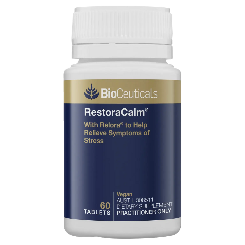 RestoraCalm® contains Relora® a proprietary blend of magnolia and phellodendron, to help relieve symptoms of stress. Skullcap and passionflower are traditionally used in western herbal medicine to relieve nervous tension and restlessness, relieve disturbed and restless sleep, and alleviate symptoms of mild anxiety.